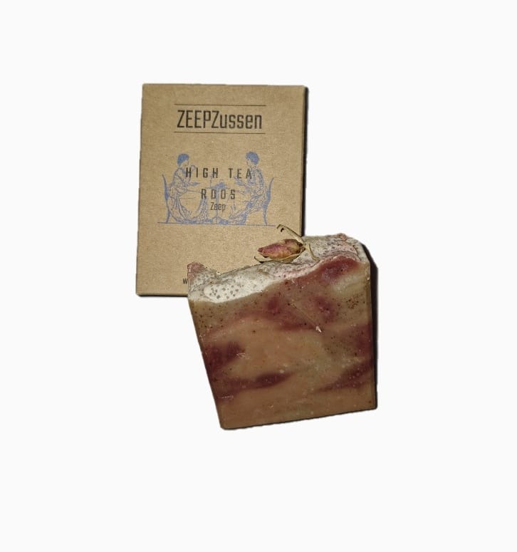 Verzorgende zeep met mooie roze kleuren, diverse soorten klei en een heerlijke geur van thee en vruchten.